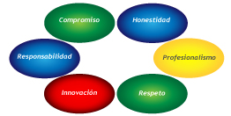 Somos una empresa consientes de que nuestro recurso más valioso es el capital humano, que actuamos e inculcamos profesionalismo, responsabilidad, compromiso, lealtad, honestidad, perseverancia, proactividad, respeto, pasiòn, calidad, trabajo en equipo y creatividad.